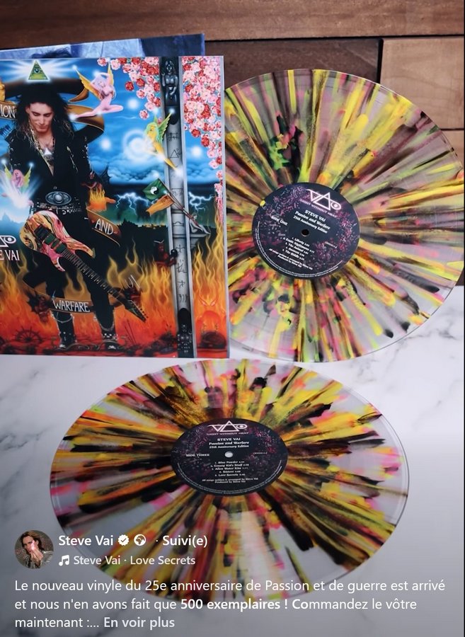 Delta70 Custom Total utilisateur #3078 Publié par Delta70 le 21 Fév 2026, 16:35 "Passion & Warfare 25ème anniversaire (Edition Vinyl Repress)". La version avec autographe à $100.00 (500 exemplaires, déja sold out !) https://stevevai.myshopify.com/ https://www.facebook.com/reel/(...)46039 Passion & Warfare 25ème anniversaire Modifié le 21/02/2026 à 16:36