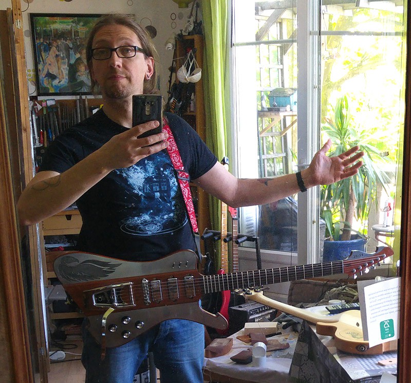 Pour une gratte avec un manche plus massif et lourd il faut répartir différement quite à avancer la forme du pan supérieur (ou cutaway) comme pour la basse :