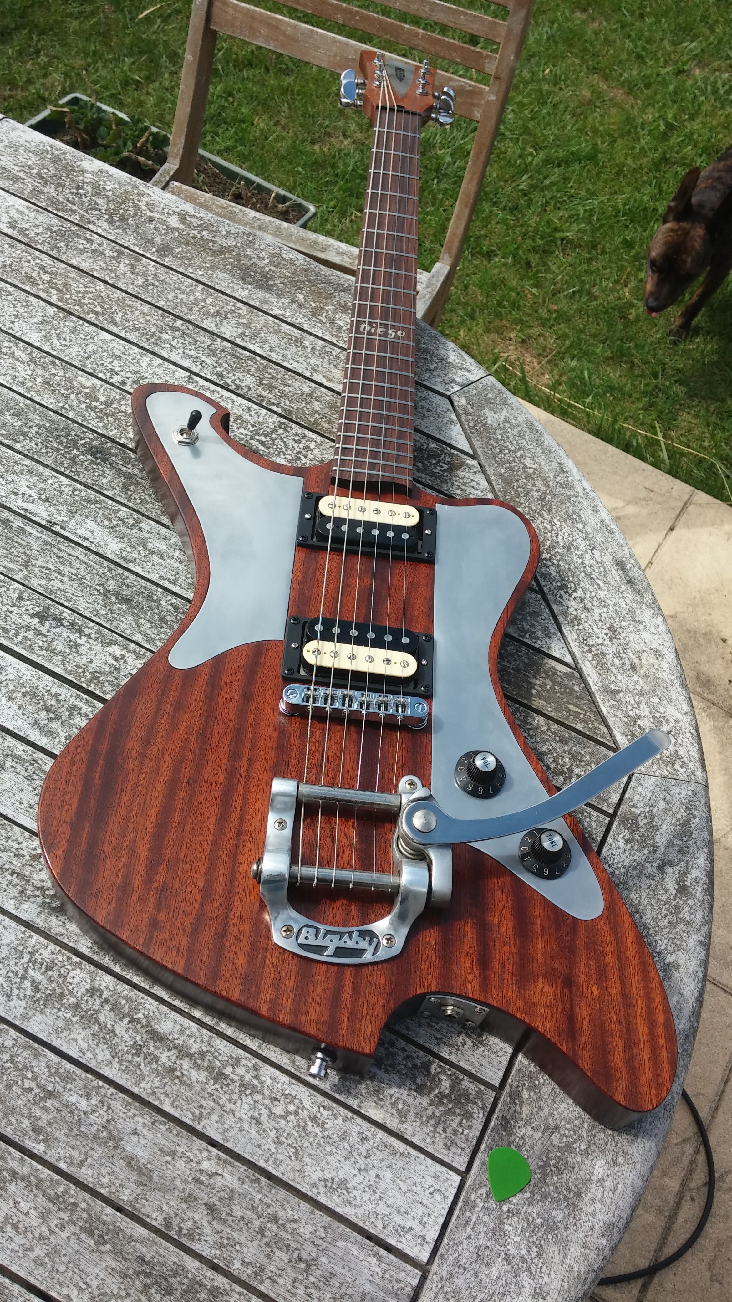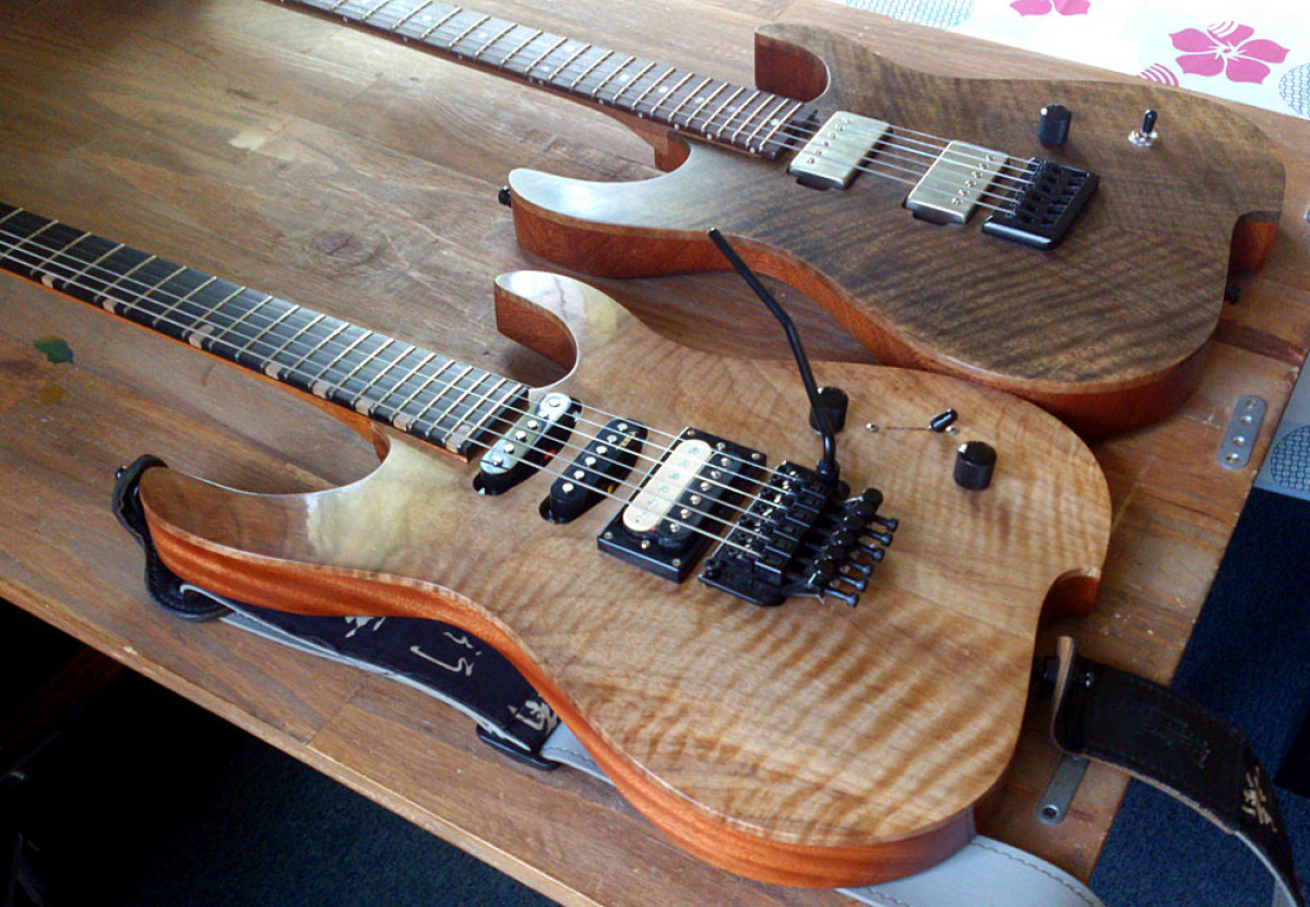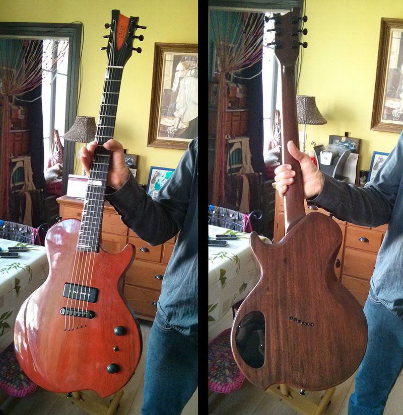 Je fabrique donc des guitares entièrement à la main (pas de CNC, pas de pièces manche/corps/etc.. du commerce) dans des bois sélectionnés et choisis avec le client.
