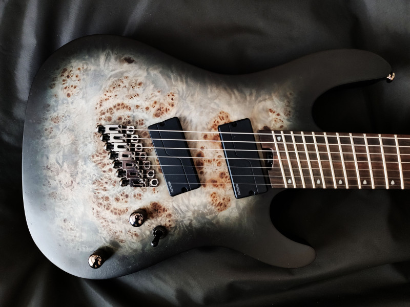 Une 7eme corde donc assez ferme, et des cordes aigus qui garde une certaine souplesse.