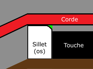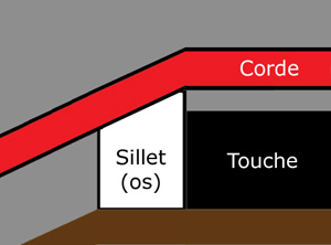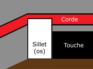 Voici une autre vue schématique du sillet, cette fois vu comme si l’on se tenait debout sur la touche (merci PhotoShop !)