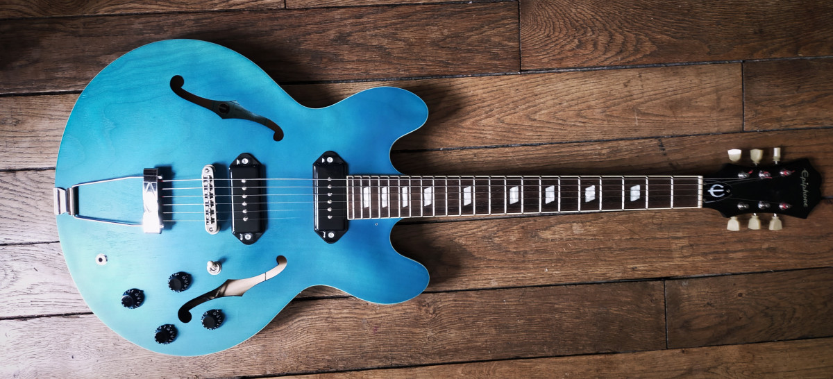 La guitare est globalement bien construite et conforme aux dimensions des Casino US, seul les bois et matériaux utilisés différent, sont cheap et tu n'as pas toutes les harmoniques et la richesse acoustique des bois nobles de la lutherie américaine.