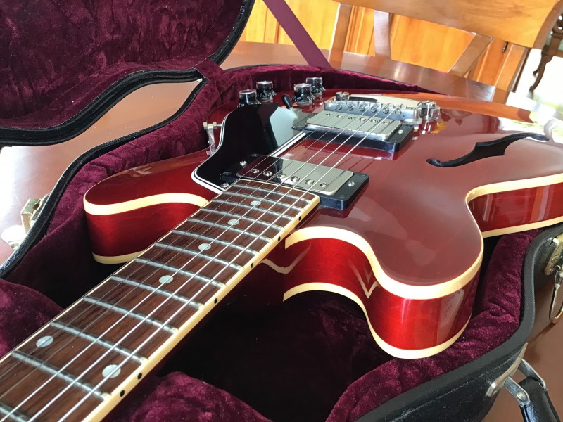 J'ai vu que beaucoup achetaient une Epiphone Dot et changeaient les micros mais moi je flashe sur ce modèle.