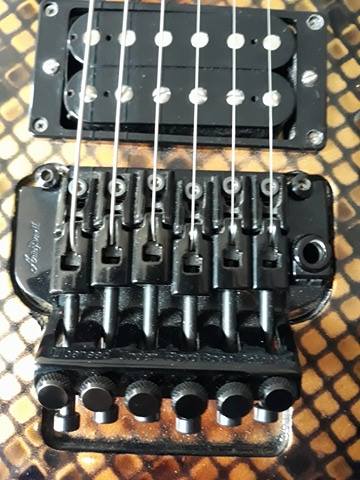 Le Floyd m'a pas l'air d'origine (TRS 101 Takeuchi et chinois à partir de mid 90's... là c'est un Gotoh !) Les micros non plus n'ont pas l'air d'origine (C'etait du Select by EMG badgé Aria)