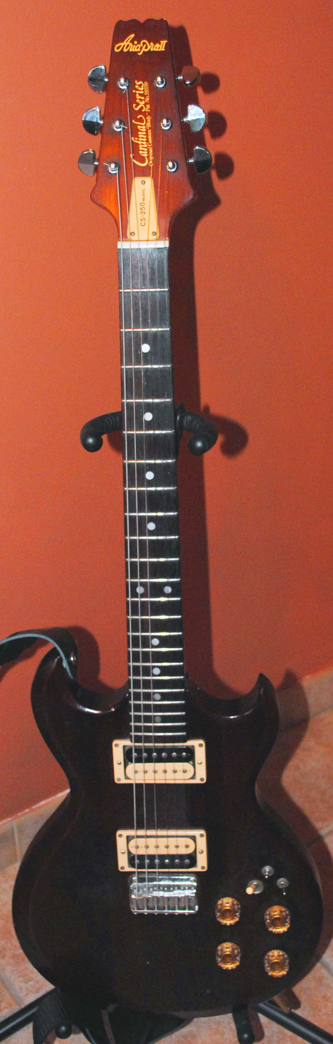 Je viens de récupérer une Aria Pro II ZZ Deluxe en finition Zebra (trop cool!). La mémère n'a pas dormi dans son étui et y'a un peu de boulot dessus (corps fendu entre le micro grave et le neck pocket, pocs par ci par là...). Le plus délicat va être au niveau du bloc vibrato ACT2 (non bloquant avec deux pivots assez écartés plutôt aux dimensions Floyd Rose qu'American Std).