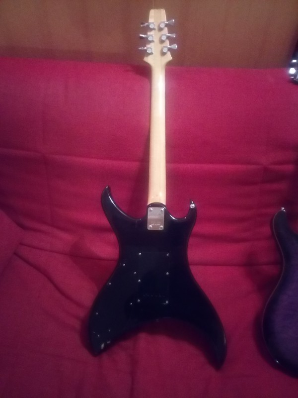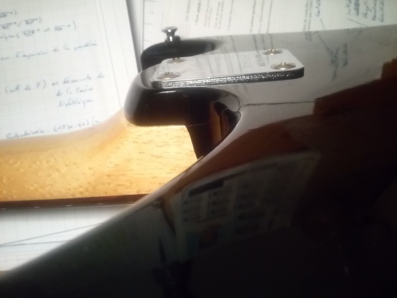 Au final tout est bien d'origine (même les micros, de bons MMK45 ) avec les tampons de l'usine au niveau du manche et du corps. La fissure à le base du manche n est qu assez superficielle au final et ne bouge pas donc bon... En soit une vieille dame éraflée mais encore respectable ! Les frettes sont peut être à changer, a voir selon les goûts.