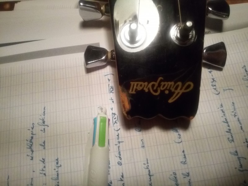 La tête (avec le premier petit dégât), qui est un peu à l'image de lagratte: rescapée des concerts de son ancien propio