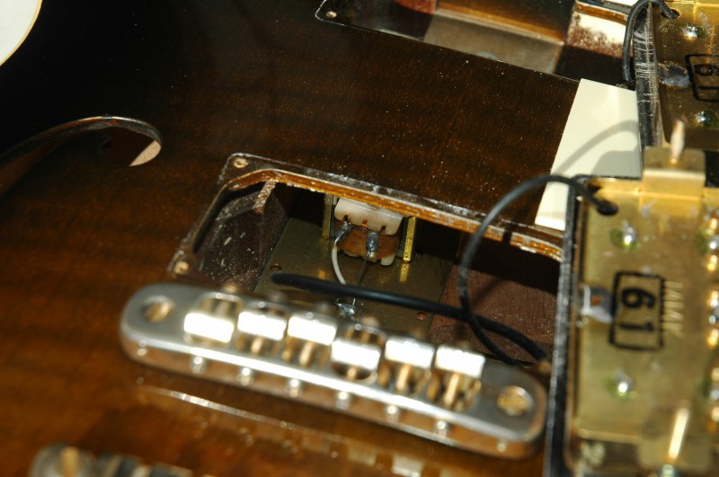 Bon bref, en inspectant ses entrailles, j'ai vu un truc qui m'a stupéfait : un tout petit transformateur fixé dans la caisse, entre les deux micros