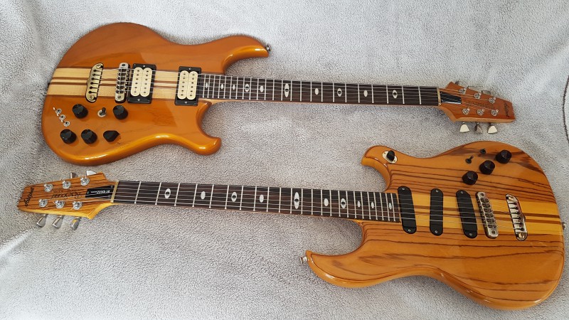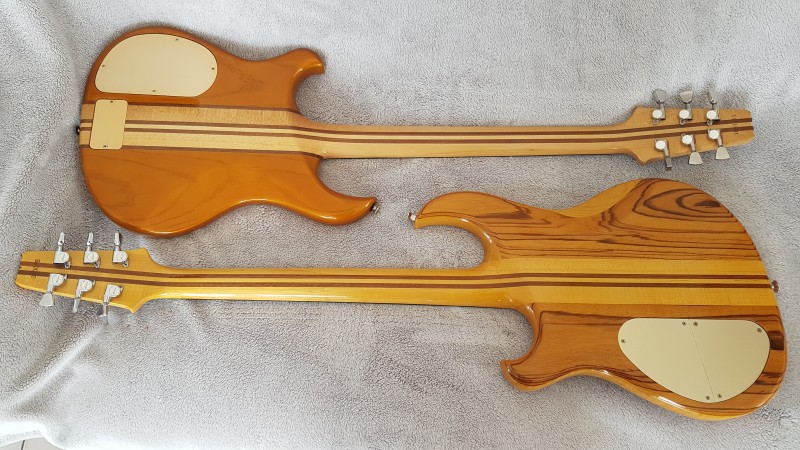J'ai fait les premiers essais en fin de journée. La guitare manque encore de réglages, en particulier le sillet os est encore trop haut, donc c'est chiant (et pas très juste) sur les premières cases. L'intonation est (presque) nickel. Le manche au diapason Fender (ça m'a étonné) est un fat C, je dirais radius 12, bien droit, truss fonctionnel, pas encore idéalement confortable à jouer (cordes trop hautes sur les premières cases). Malgré tout c'est plus un manche à jouer des gros riffs et des rythmiques qu'à faire des acrobaties de shredder. Je verrais bien des frettes un peu plus grosses, même si celles d'origine ne sont pas bouffées. Inox, j'ai peur d'un excès de brillance, je vais voir. J'ai monté un jeu 10-46 pour dégrossir les réglages, mais je pense que je la monterai en 10-52 pour avoir plus de gouache sur les basses.