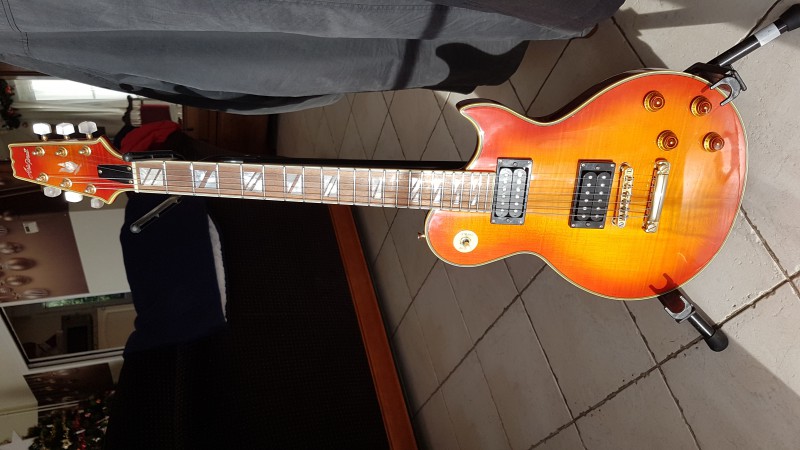On m'a offert pour mon anniversaire en 91 , cette aria custom shop pro2 numéroté 91036.