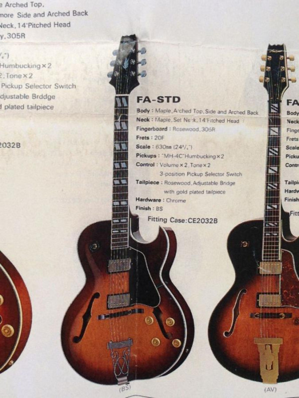 Je possède une Archtop Aria Pro II ES 175 exactement identique à la FA STD : la guitare est totalement mint et d'origine (elle n'a eu qu'un propriétaire avant moi) et serait de 95, mais j'ai beaucoup de mal à trouver des infos.
