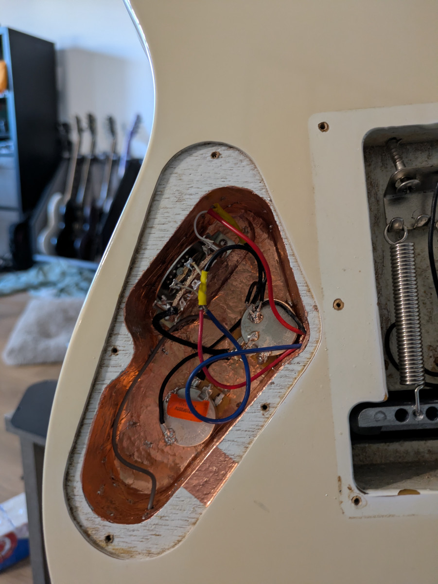 Donc voilà, la belle a retrouvé un bloc tremolo et des écrous pour le bloc corde. Pour info, le bloc tremplo est bien taraudé en M5.