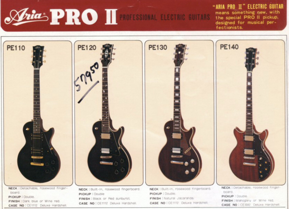 La PE 110, manche détachable, touche en palissandre, coloris dark blue ou wine red, figure au catalogue de 1977 (