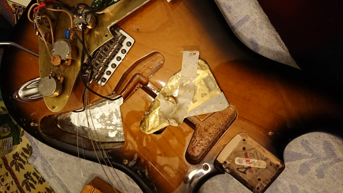 Le vernis posé et séché, ne l'était jamais à 100% et les composants volatiles se mettaient à migrer dans les deux directions et foutre le camp. Je le vois sur ma 1959, le vernis c'est du papier à rouler. Résumé un peu con:c'est plus l'absence d'une partie du vernis