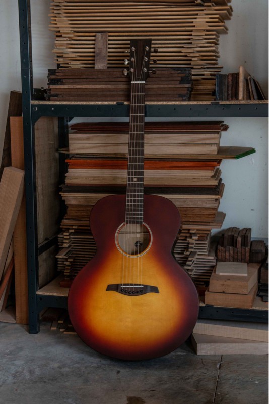 pour le dos, les eclisses et le manche c’est de l’autralian blackwood (acacia melanoxylon), un cousin du koa (acacia koa). pour la table on est sur du cèdre jaune d’alaska (il doit avoir facilement 150 ans d’age celui la!)
