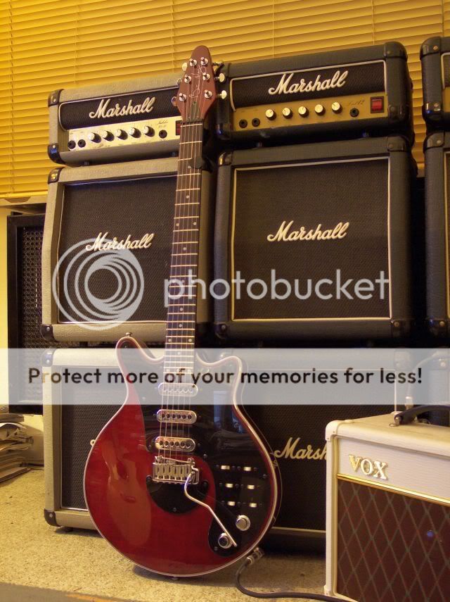 - le son: je ne pourrai pas essayer ce soir avec AC30+treble booster (sinon mes voisins sortent la kalashnikov) mais déjà dans le petit Brian May Special, le son typique est bien là, pas de doute