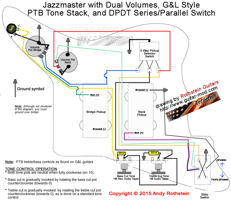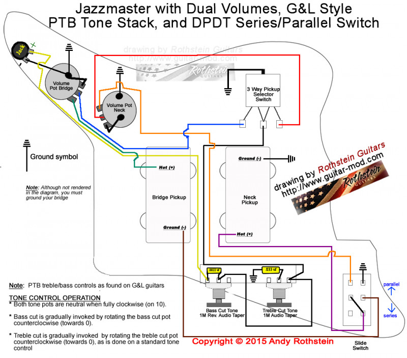 J'ai une Jazzmaster et je souhaite réaliser le câblage suivant :