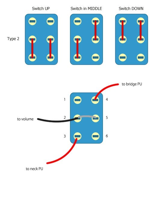 Dans le cas d'une LP, c'est à dire 1 Volume + 1 Tone par micro, les "to X PU" sont à remplacer par les volumes respectifs et "to volume" par "to jack".