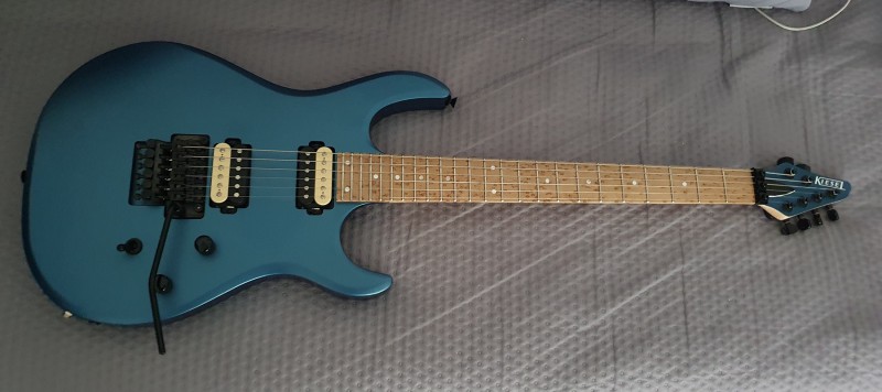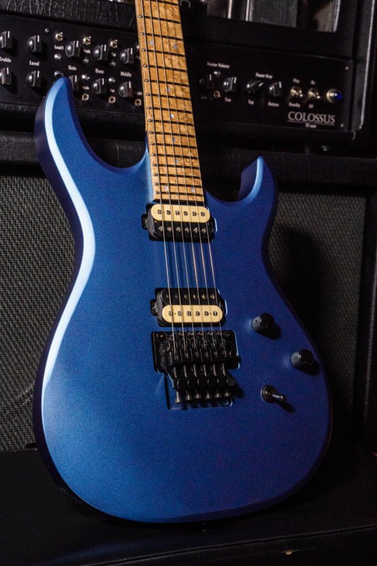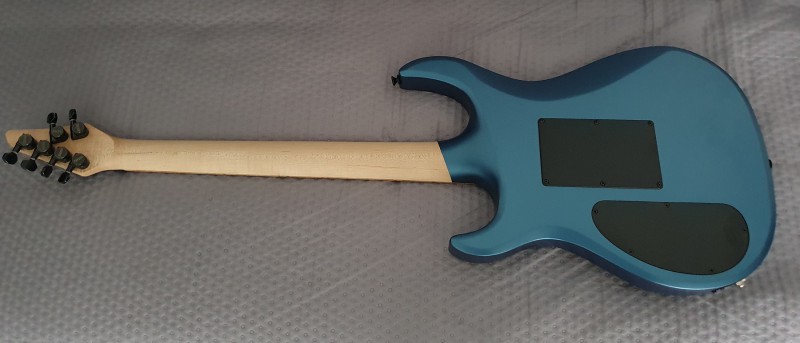 C'est une gratte super précise, assez droite, avec une touche particulièrement agréable a jouer (frettes Jumbo inox, radius de 12", diapason 25), bon sustain . La touche érable roadsted mouchetée est particulièrement réussie. Les micros : chevalet Greg Howe, manche Allan Holdsworth.