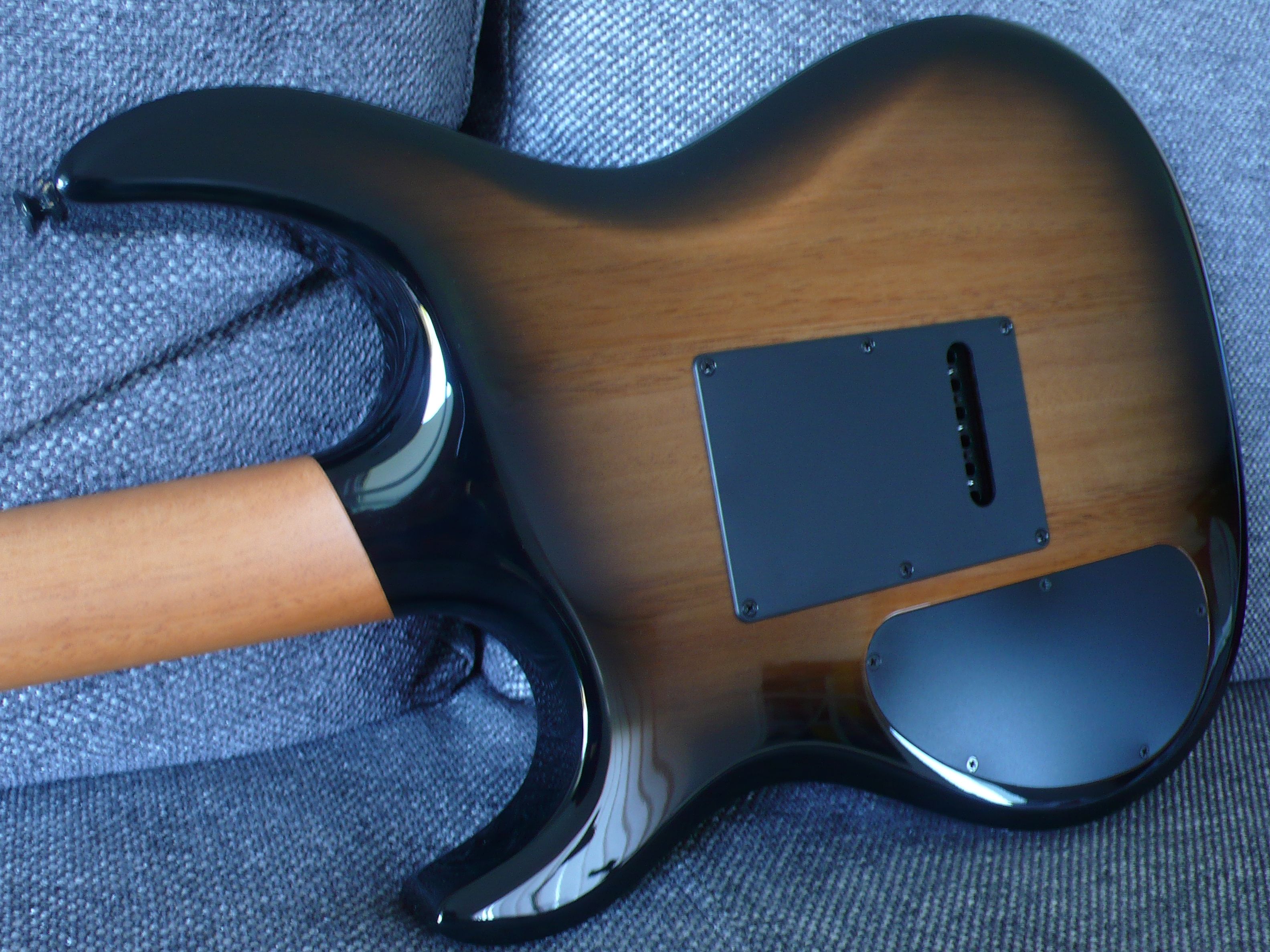 J'éspère que les qq photos prisent permettrons de mettre en valeur la beauté du bois ainsi que le vernis sur le corps, quand au manche il est satiné et pour ceux qui ont déjà joué sur Musicman, ils retrouveront un peux voir beaucoup ce coté satiné huilé très sympa à jouer.