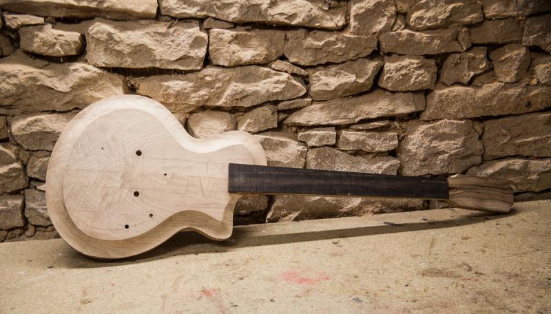 je termine la basse 5 cordes The leaf, et ensuite j'attaque une Bokken "old school" surf green.