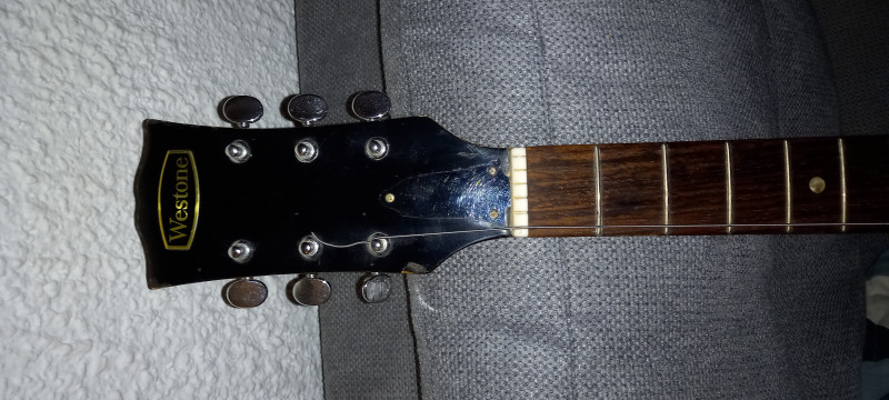 je n'y connais pas grand chose en guitares et on me propose une Weston, qui serait des années 70, dont je n'ai pas les références ni de numéro de série visible sur l'instrument. J'ai quelques photos de la bête qui est dans son jus.