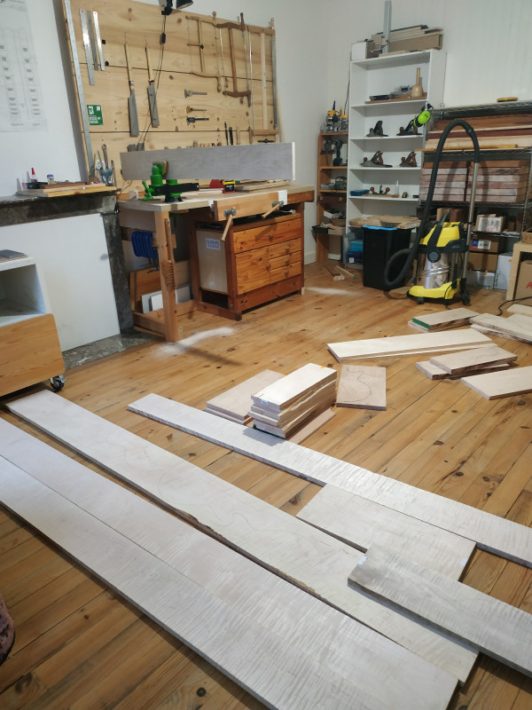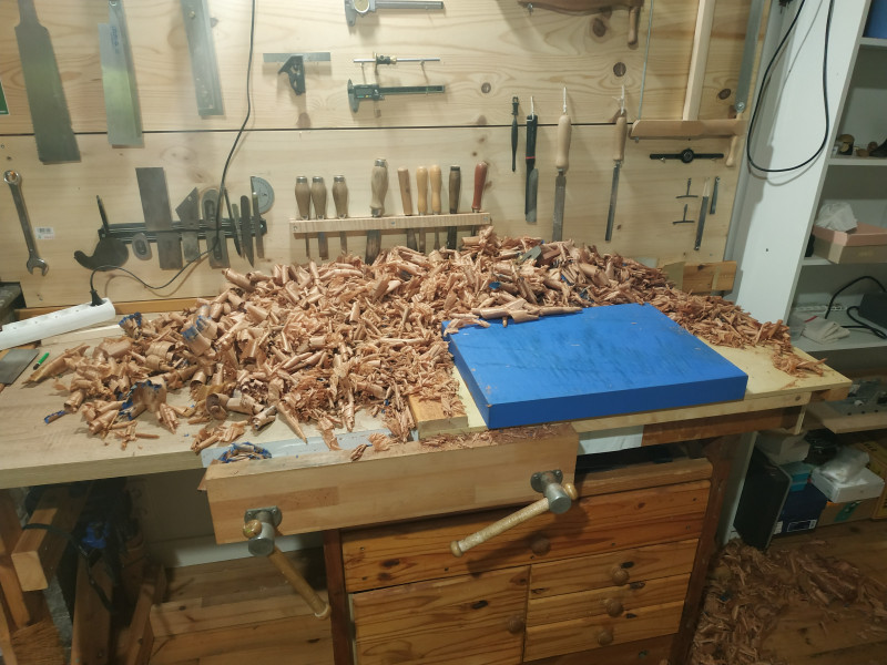 et voila ou j'en suis après quelques coups de rabots , de scie a chantourner et de ponceuse a cylindre bien placé , avec une petite "surprise"....