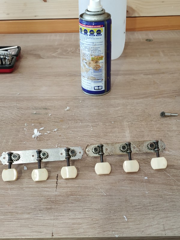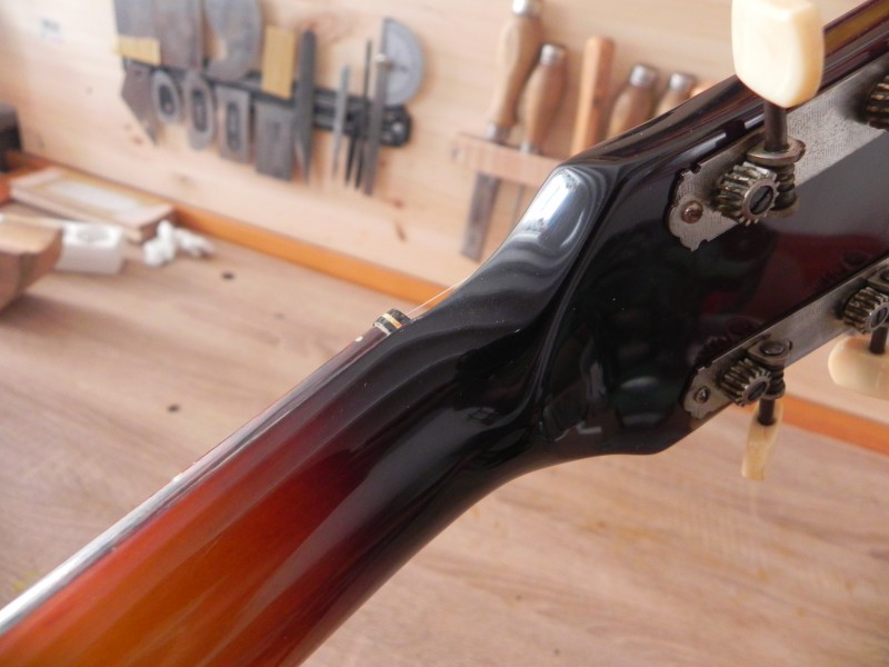 j'en ai profité pour enlever la rouille de l'accastillage, nettoyer le fretboard, réglage ...enfin bref y'avait du boulot quoi!