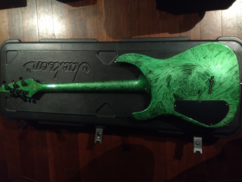 La LTD j'ai vraiment essayé l'entrée de gamme (même pas avec des EMG). En fait je voulais voir ce que donnait la forme Les Paul. C'est plus compact et la prise en main est assez instinctive bien que le manche soit plus épais que sur mes superstrat. La Shecter était très flatteuse d'aspect et elle était réglée à la perfection. Il faudrait que j'essaie une EC-1000 bien réglée pour comparer.