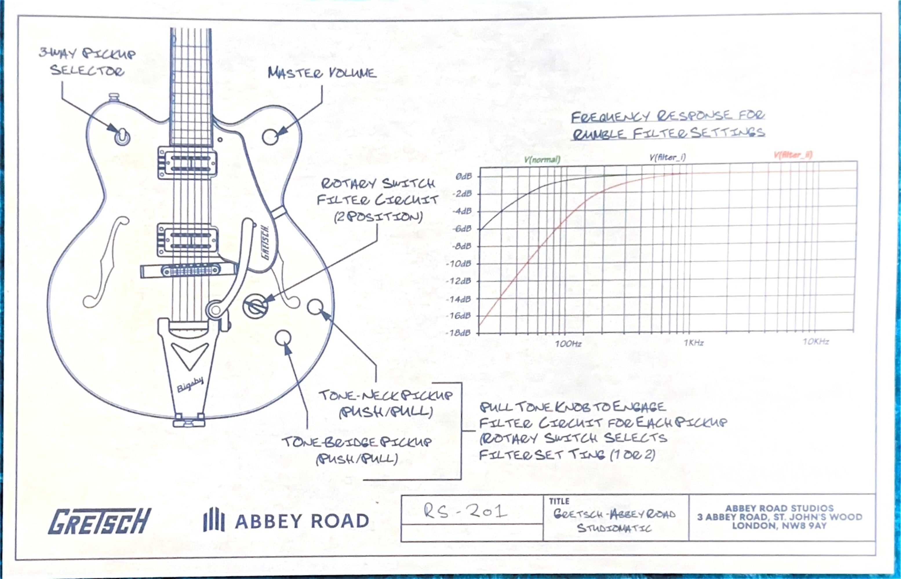 Rumble Filter circuit with two-position rotary selector and push/pull pots for each pickup