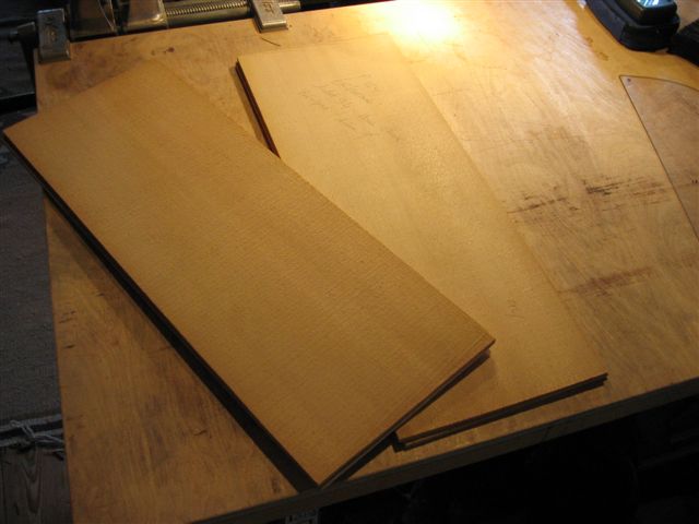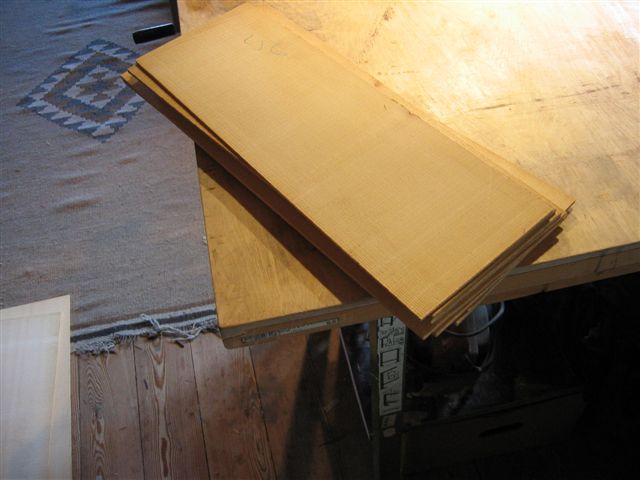 Bien ! Comme la rosace est en train de sécher et la table entrain de reposer. Profitons en pour choisir le bois du fond et des éclisses.