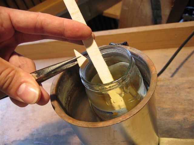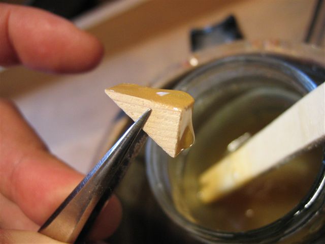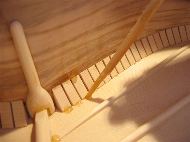 Collage de différent points (extrêmité des barrages, taquets, etc...) à la colle à chaud.