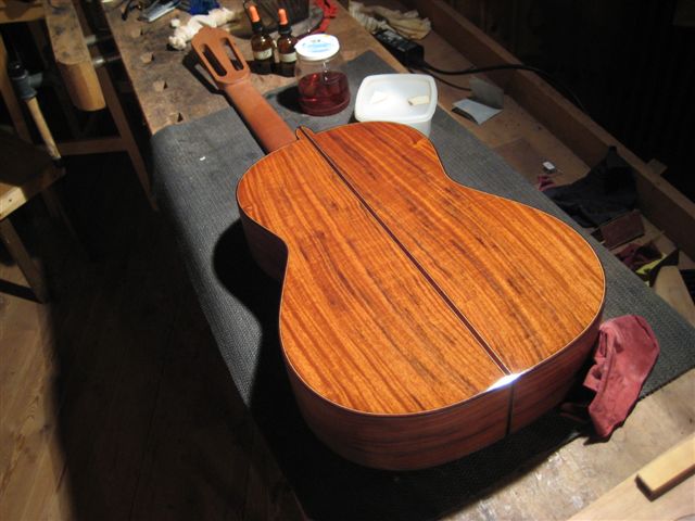 André était là pour vernir au tampon une guitare dont le client allait prendre livraison tout bientôt !