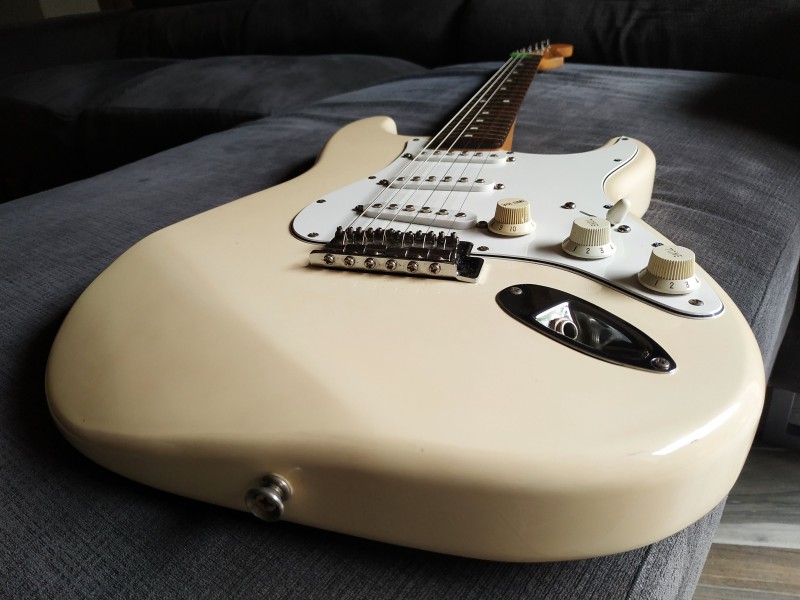 c'est vrai qu'elle n'est pas parfaite visuellement, mais elle a un "truc" cette gratte... je parle de ressenti lors du jeu... pour les micros, je te cache pas qu'ils sont pas à l'attendu mais ct surtout un souci de dynamique, ils ont quand même un son strat...