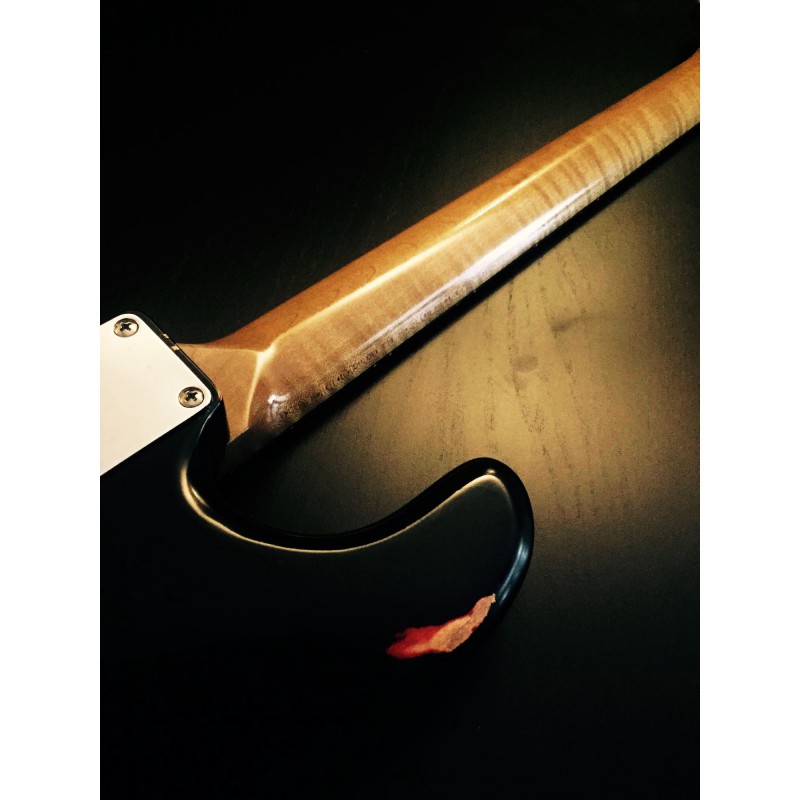 - Verni manche nitro satin, teinte ambré vintage.