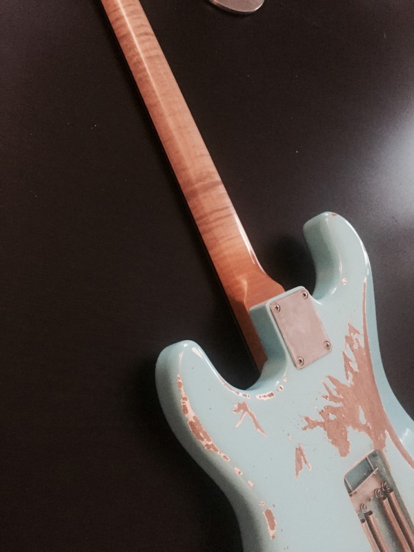 Je commence à visionner ta photo et je me dis quel beau manche en érable flammé, puis viens le corps dont la couleur me plaît super, mais je crains les détails de finition!