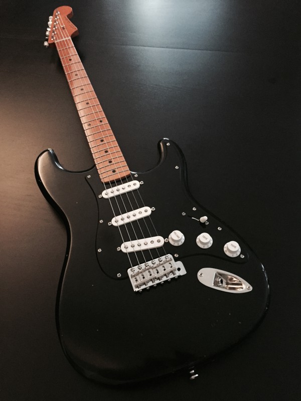 Ce n'est pas une strat noire, c'est une strat noire avec des micros blancs !