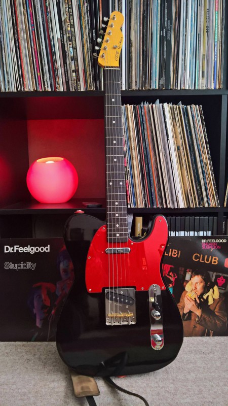 Ca a été très simple: je n'ai dû toucher à aucun réglage, et elle a superbement sonné sur tous les amplis sans exception! Le test du JMP étant particulièrement sélectif, j'ai toujours trouvé que les teles sonnaient difficilement avec cet ampli ... ben là c'était d'un naturel ... . Les micros sont terribles au passage (j'ai pris le jeu Haussel de niveau intermédiaire, un poil plus puissants que les strict vintage, mais pas trop non plus): le micro chevalet twangue et claque, et le micro manche est peut-être le meilleur micro manche que j'ai joué sur une tele! Les deux étant parfaitement équilibrés en plus.