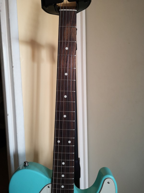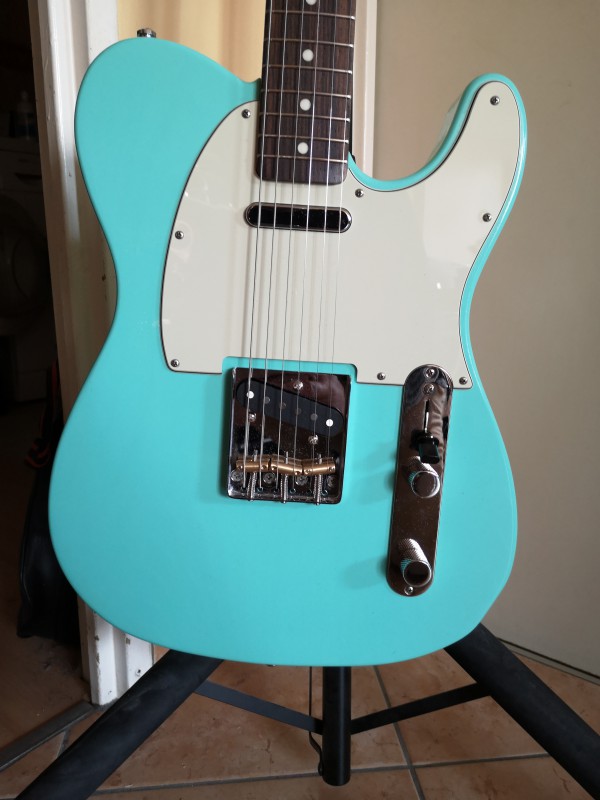 Et la 2ème (prévue celle là) une Telecaster avec une couleur sea foam green transparent (pas sûr qu'on ne voit bien le côté transparent sur les photos)
