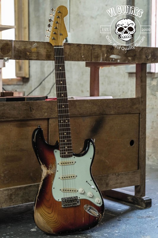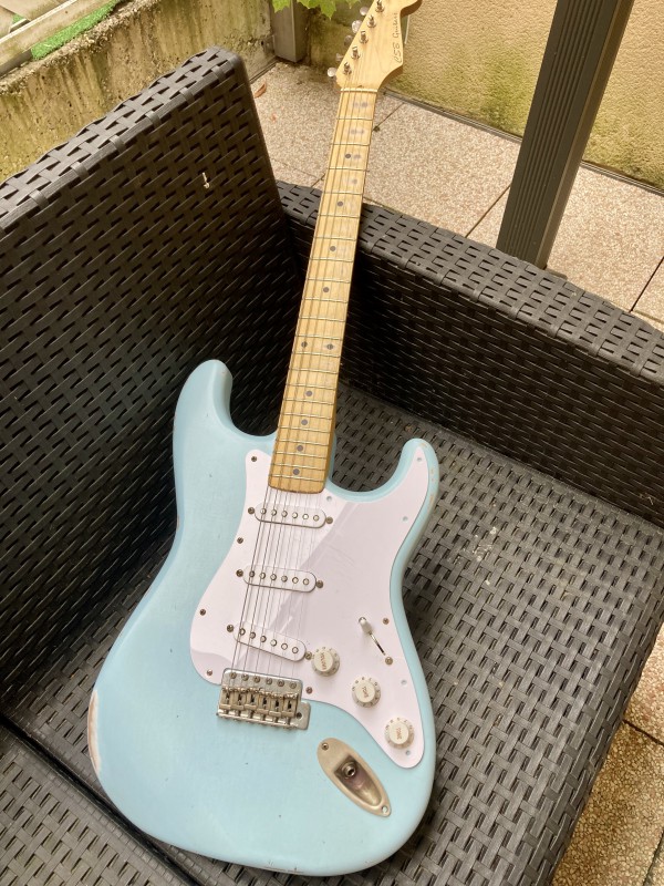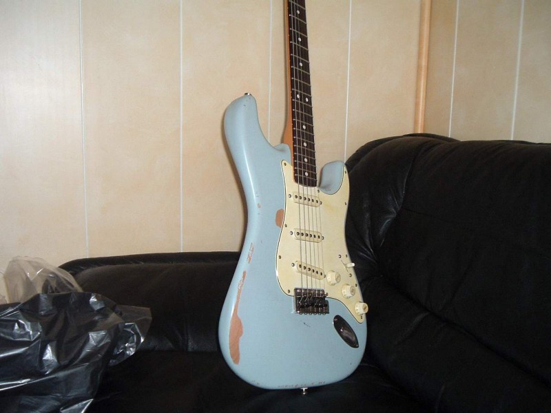 ( à sa décharge, elle est constituée , pour une partcaster, QUE de pièces 7ender ( des assez bonnes années -?- 1991 et, hormis un decalc transition et des frettes Tal narrow, c'est quasiment une RI62 ! ... ça m'a coûté un bras -là aussi pas pratique pour jouer