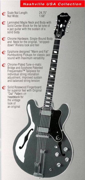 A partir des années 89-90, le "Epiphone by Gibson" disparait pour un simple "Epiphone" et "Gibson" n'apparait plus que sur le cache truss rod.