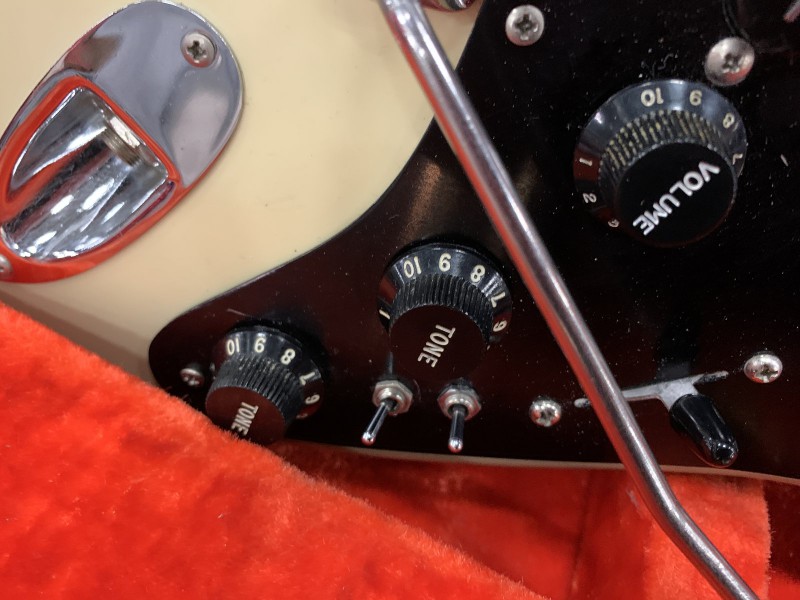 Annoncée 1000€, à mon avis bien négociable : micros et électronique changés, mecas changées pour des Grover, vernis à priori refait. Très lourde, je suppose en frêne, chouette manche assez épais..
