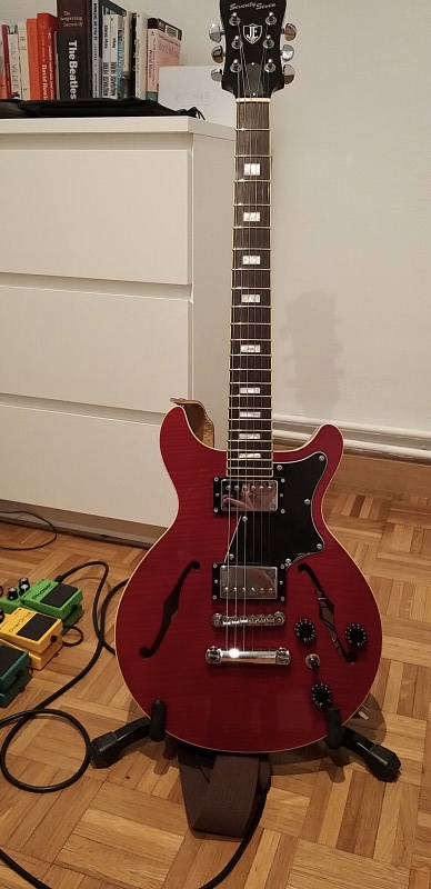A jouer non branchée, par contre, c'est un kiff absolu. C'est beaucoup plus confortable que toutes les Paul Gibson sur lesquels j'ai pu jouer. Bref, ils ont fait un entre deux un peu foireux. Mais avec des Tonerider à moins de cent euros, je devrais arriver à en faire un vrai petit bijou.