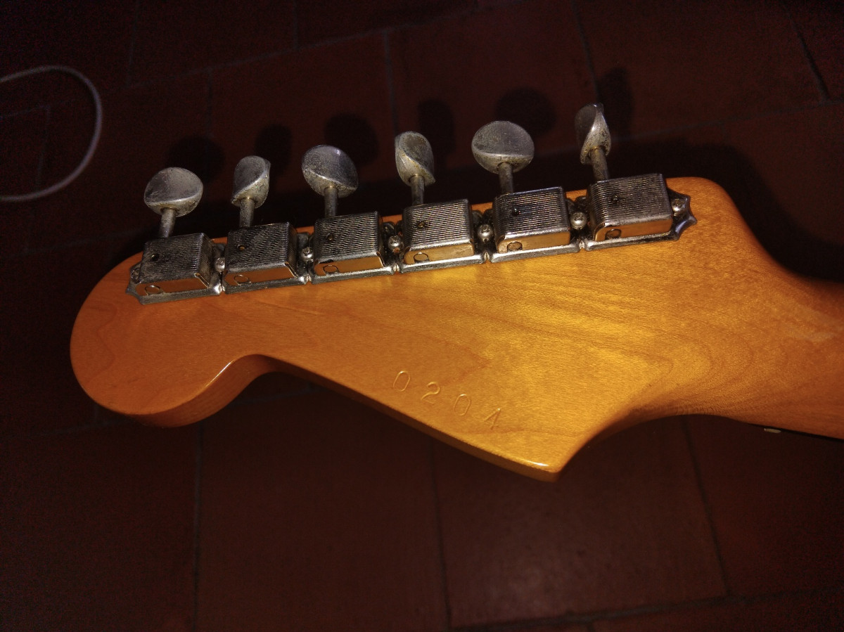 Mais en m’occupant de la guitare quelques mois plus tard, je la destinais à mon gosse, je me suis aperçu que c’était un mélange improbable, de pièces MIJ, d’autres inconnues.