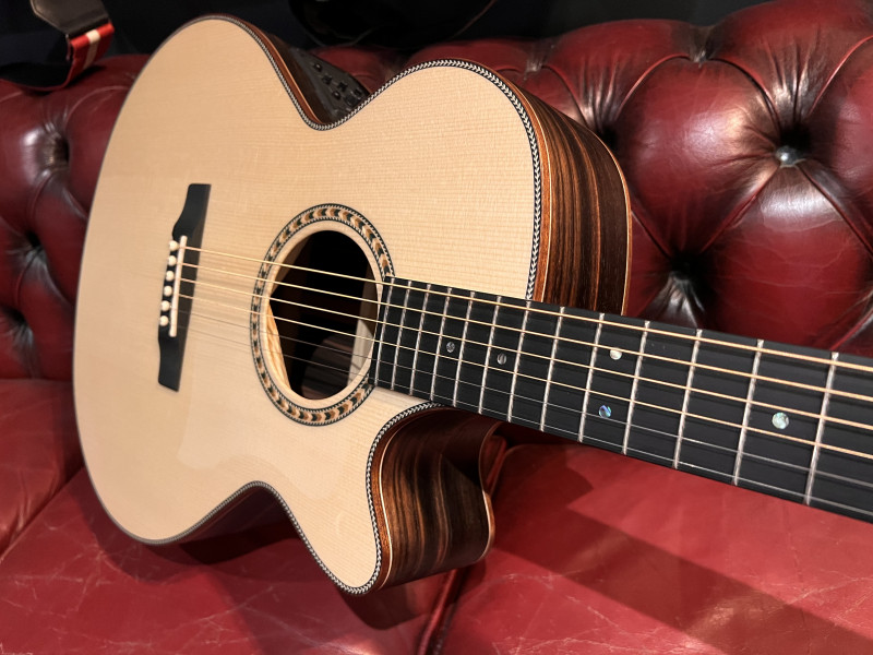 Là on sent que c’est de l’instrument construit avec soin. Ça sent le bois, c’est beau ! Au niveau confort, ça me convient mieux qu’une D, je suis petit et c’est moins fatiguant au niveau de l’épaule. Et que dire du profil de manche ? Top !