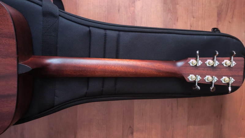 On est orienté Martin D18 pour le tone, avec un bon détachement entre les cordes. Faut qu'elle s'ouvre évidemment, c'est encore assez sec mais j'entends de très bons mediums qui chantent en accord de ré semi ouvert au milieu du manche.
