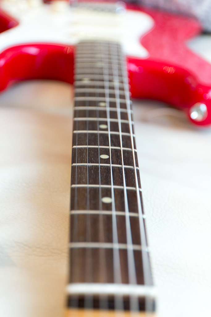 Y'a quand meme une chose qui me défrise sur cette guitare, c'est la laque posé sur la touche ebene. C'est brillant et on a pas le bois de la touche sous les doigts.