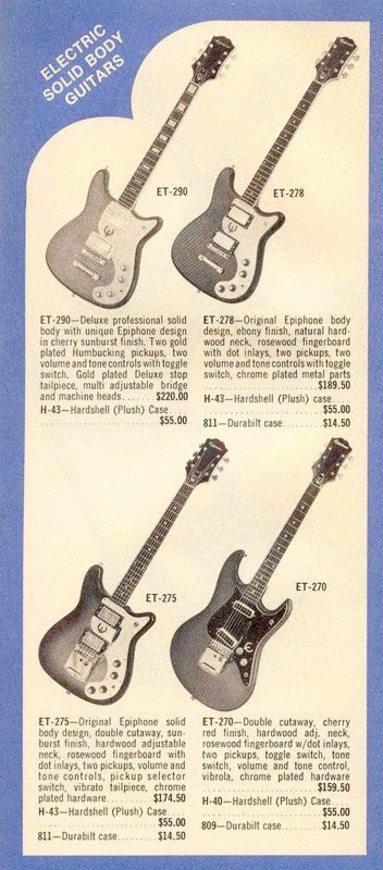 Même base que l'Aria 1802T fabriquée dans la même usine de Matsumoku. D'ailleurs, à l'origine, cette Epiphone s'appelait la 1802T, avant de se faire renommer la ET 270.