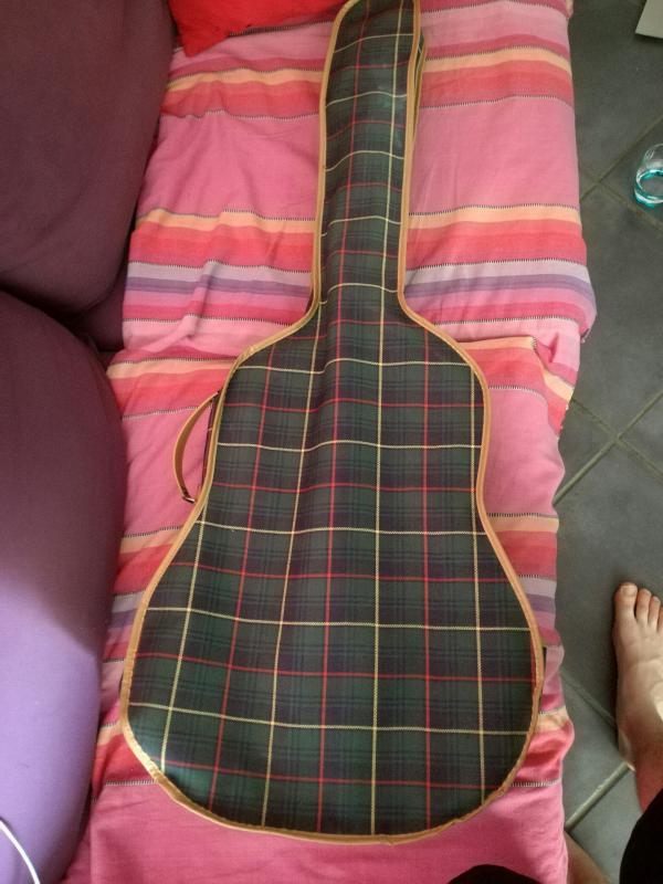 Tu es sûr que ça vient de son arrière grand père ? Son grand père, plutôt. En tous cas, la housse est typique de celles des guitares d'étude des années 60 (j'ai eu la même, pour une classique cheap chez Beuscher dans ces années là).