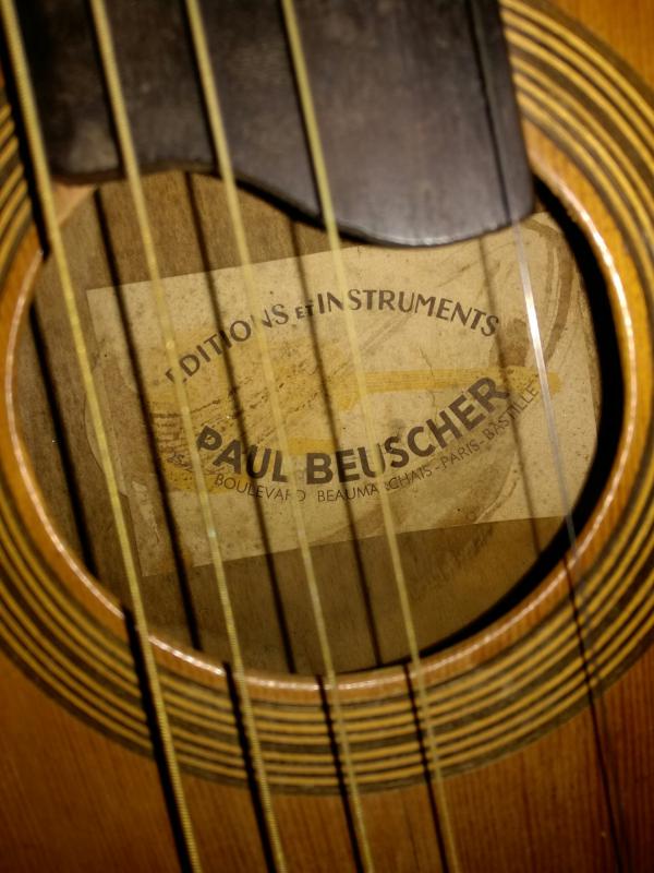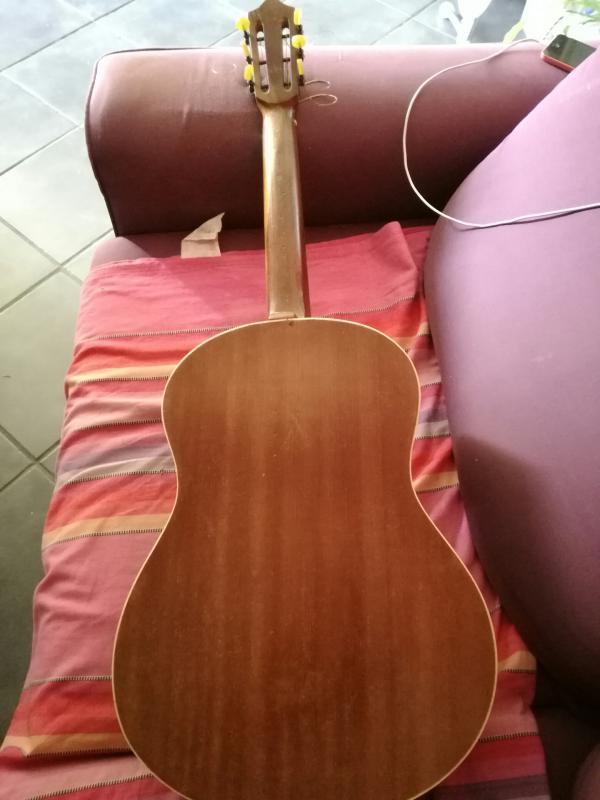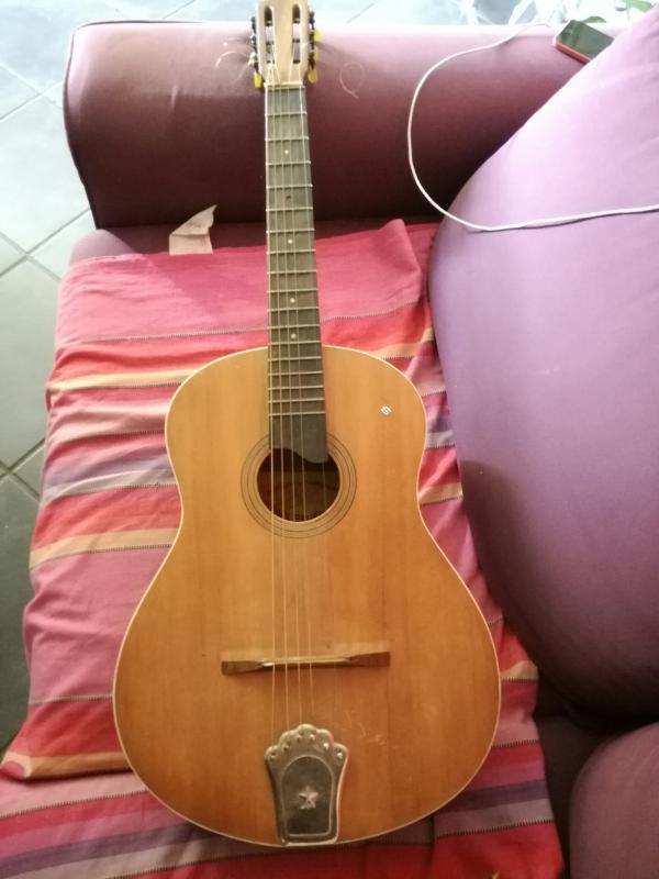 Mais bon, comme la guitare semble en état acceptable, autant garder l'objet pour le souvenir, je ne suis pas certain que la valeur dépasse quelques euros.